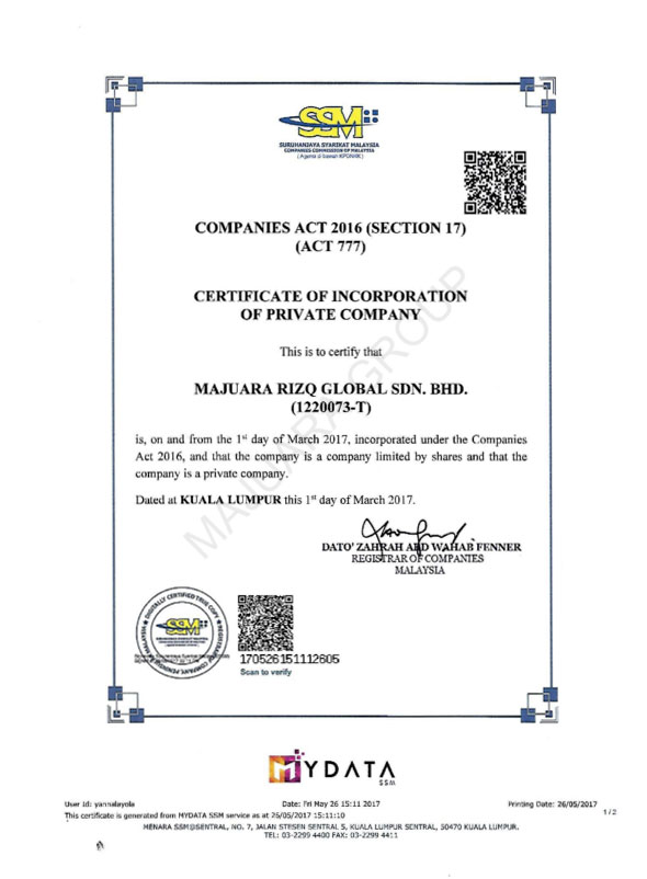 Registration Certificate